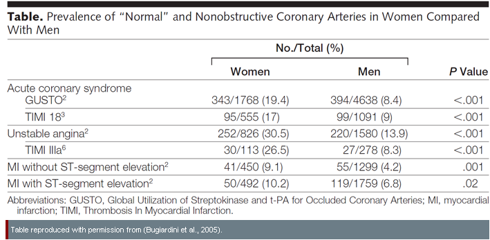 Nya studier visar dock att prognosen för dessa kvinnor inte är god: Kvinnor som får diagnosen "icke-specifik bröstsmärta" kan drabbas av hjärtattack eller stroke kort efter att de fått lämna sjukhuset (Robinson et al., 2008). Detta kan också gälla män med angina men utan obstruktiv kransartärsjukdom. Storskaliga randomiserade försök krävs för att bättre förstå patofysiologin och vilka behandlingar som lämpar sig för kvinnor och men med angina och "normala "angiogram (Shaw et al., 2009).