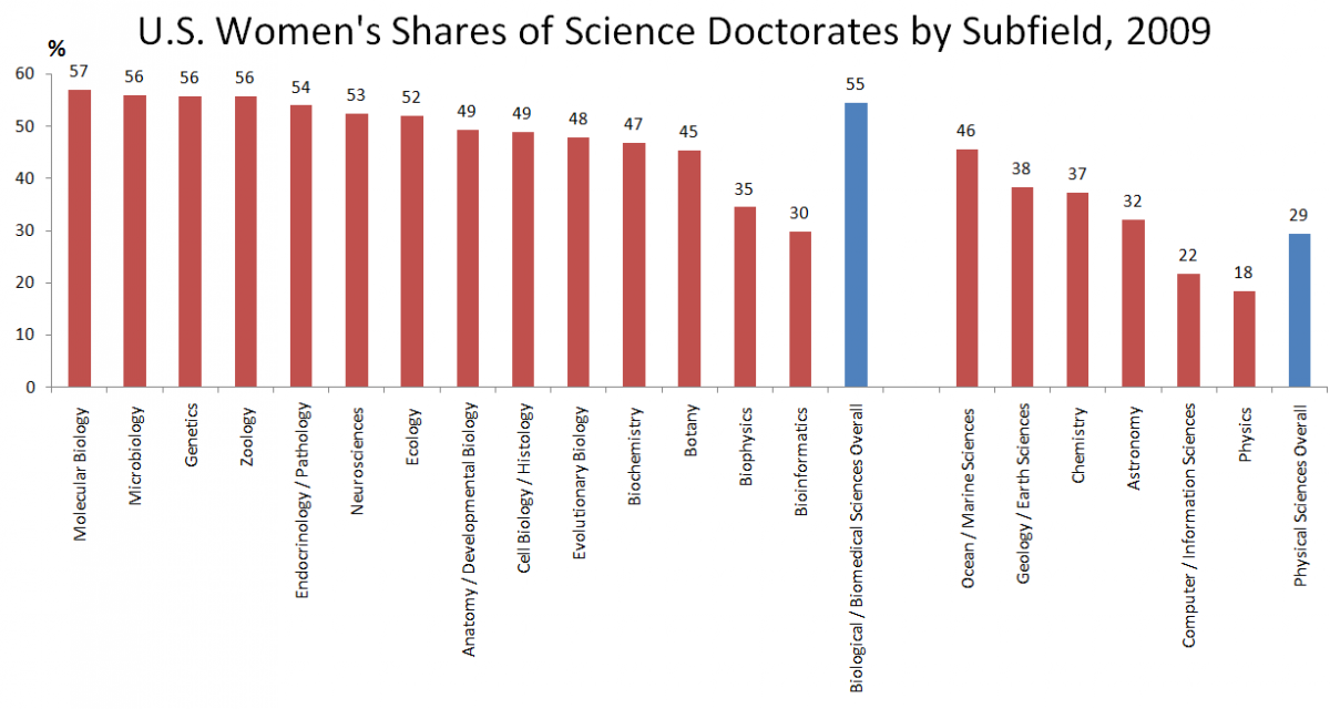 U.S. National Science Foundation, Women, Minorities, and Persons with Disabilities in Science and Engineering: 2011. Special Report NSF 11-309. Arlington, VA. Table 9-16 (208).